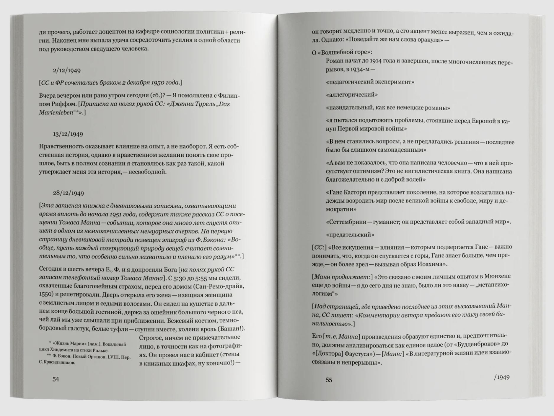 The first volume of the diaries of the American writer and essayist Susan Sontag (1933-2004), prepared for publication by her son David Riff, covers years of study at the University of California at Berkeley, further admission to the University of Chicago, acquaintance with sociologist Philip Riff and the birth of a son. A testament to both the intellectual and sensual development of America’s largest public intellectual, the diary contains lists of youthful reading, movies watched and many notes dedicated to favorite authors – Andre Gide and Thomas Mann, the last sixteen-year-old Susan visited in his California mansion, spending the whole day in a meaningful conversation. The diary also includes entries made in the year Sontag spent in Paris.