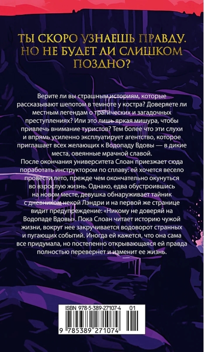 A small town lost in the deep woods of Tennessee. They say that this place has long been cursed - since the tragic story that once happened here. Having learned about his wife's betrayal, the deceived husband shot his lover and then committed suicide, and his widow, in despair, threw herself into the turbulent waters of the local river. Now this dark romantic legend attracts crowds of tourists to Widow Falls. However, even now people disappear without a trace in these places every now and then. And no one really knows what fate befell them ... Yesterday's student Sloan gets a job at Widow Falls for the summer as a rafting instructor. The girl wanted to enjoy the picturesque landscapes, meet new friends or even find a love affair, but very soon the surroundings begin to seem at least strange to her. Apparently, Sloan will have to personally figure out where the old legends end and the terrible truth begins.