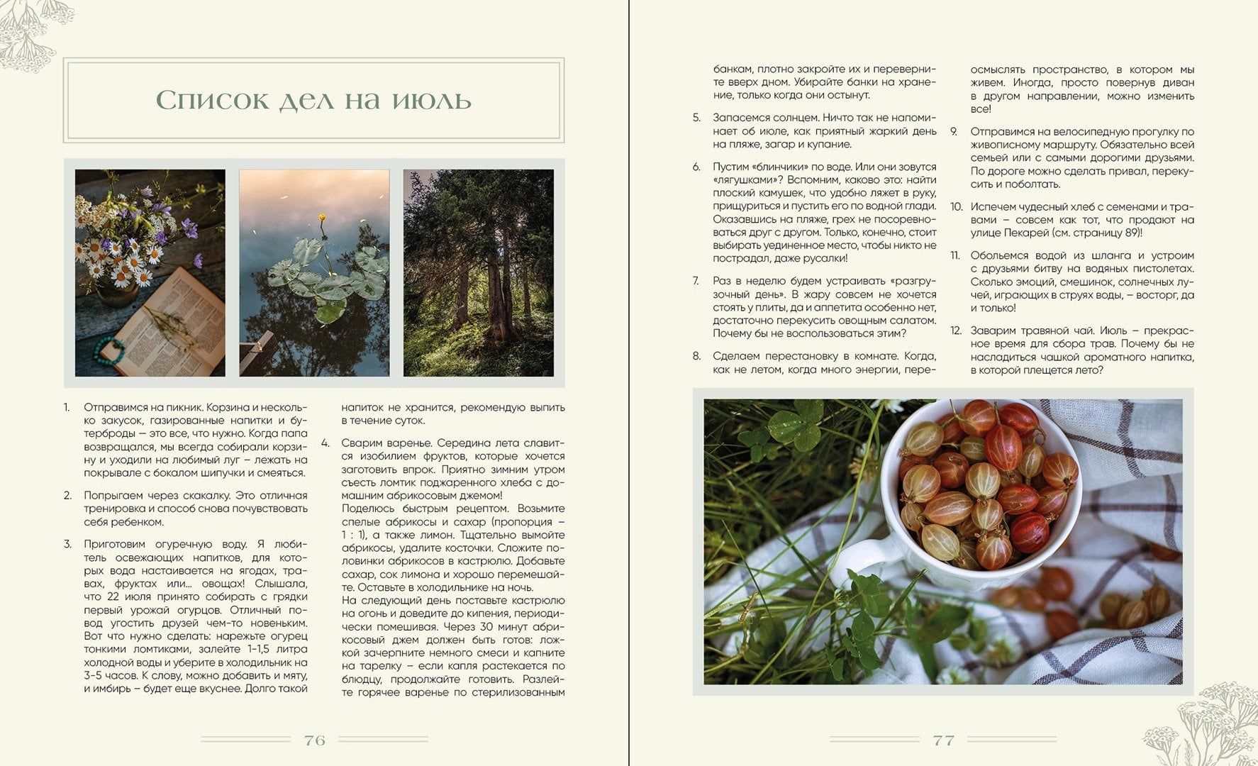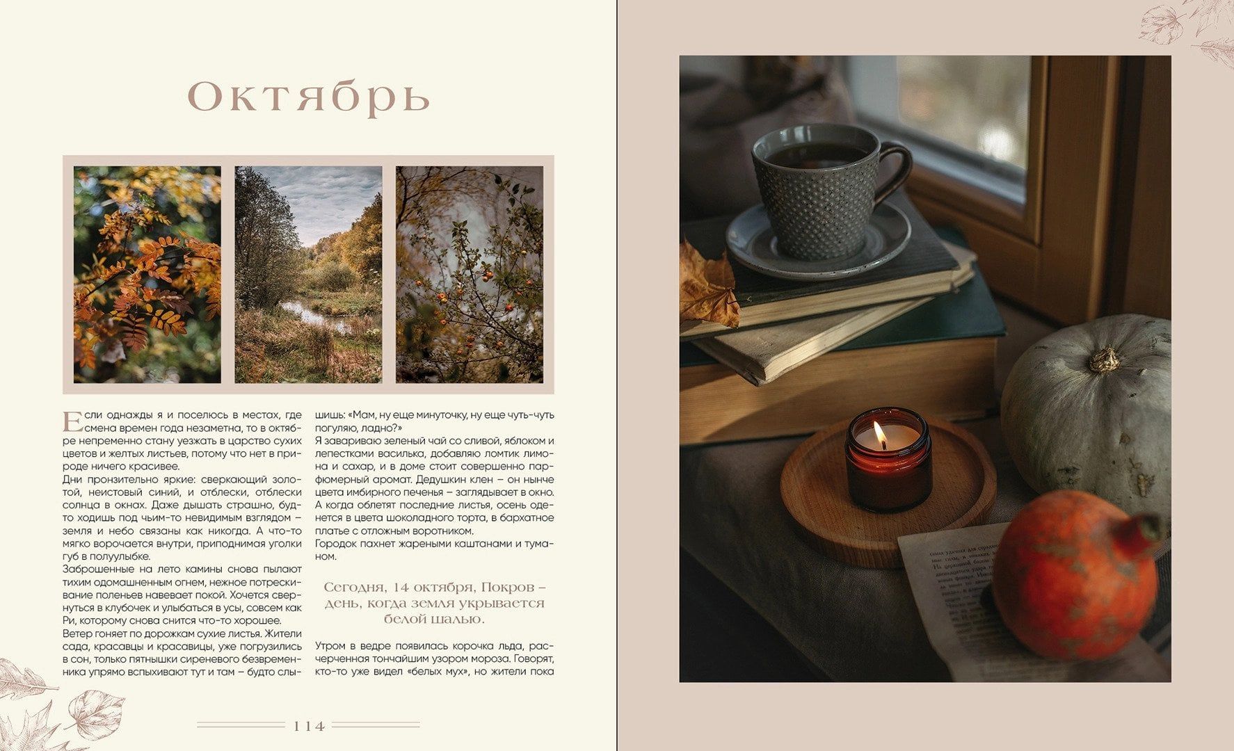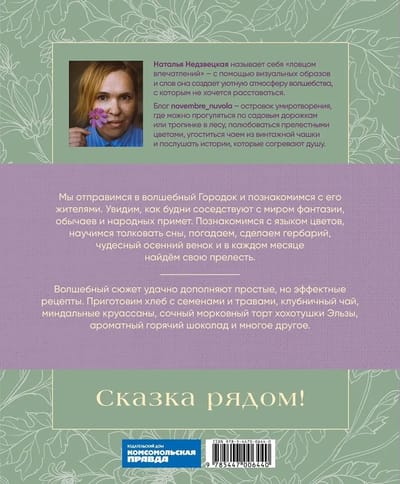 Natalia Nedzvetskaya calls herself a "catcher of impressions" - with the help of visual images and words she creates a cozy atmosphere of magic, with which one does not want to part. Her blog novembre_nuvola is an island of peace, where you can stroll along garden paths or a path in the forest, admire lovely flowers, drink tea from a vintage cup and listen to stories that warm the soul. We will travel to the magical Town and meet its inhabitants. We will see how everyday life neighbors with the world of fantasy, customs and folk signs. We will get acquainted with the language of colors, learn to interpret dreams, read fortunes for Holy Days, make a herbarium, a wonderful autumn wreath and in each month we will find its charm. The magical plot is successfully complemented by simple but effective recipes. We'll make bread with seeds and herbs, strawberry tea, almond croissants, juicy carrot cake of Elsa the chucklehead, fragrant hot chocolate and much more.