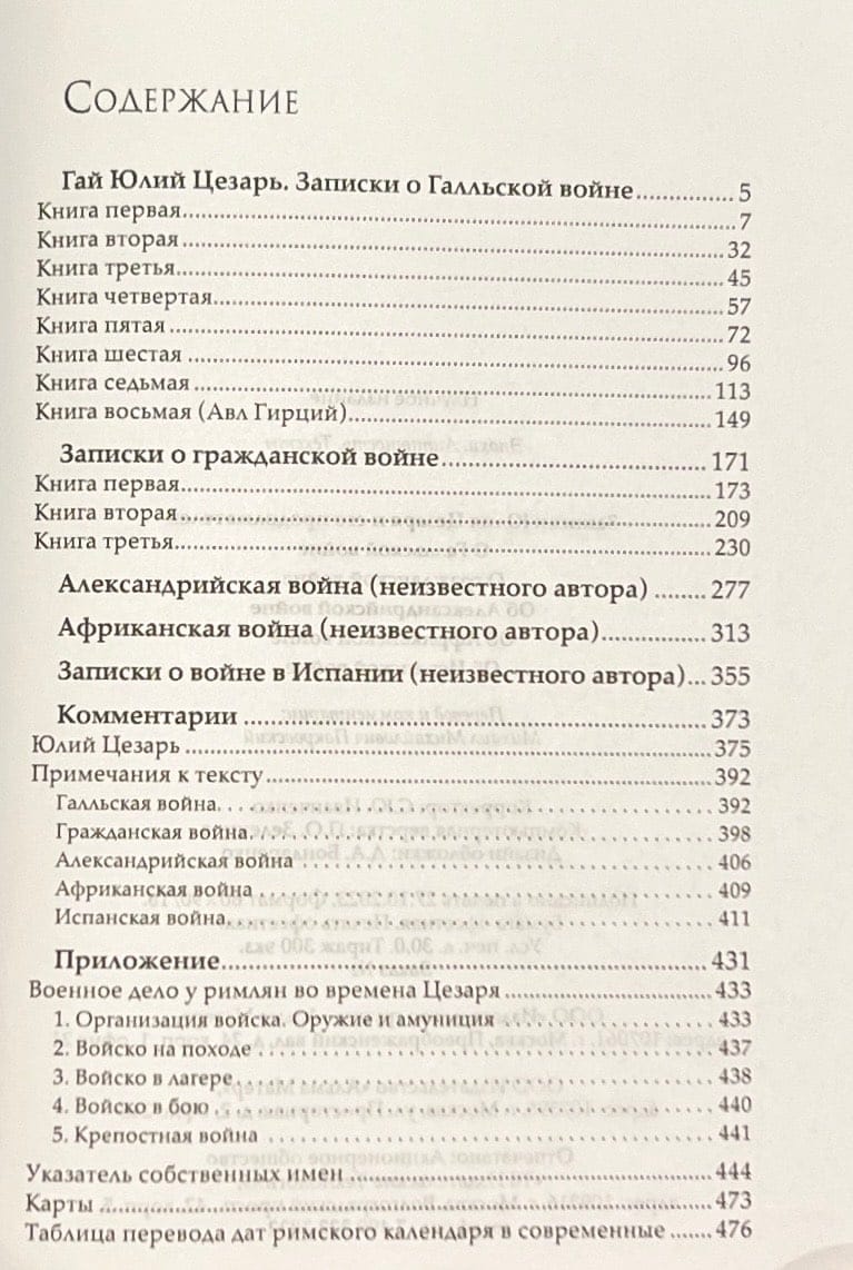 This book presents the complete corpus of Gaius Julius Caesar's writings. Caesar's choice of the Latin term commentarii for the title of his books meant "notes" or "memorial notes" and, in the linguistic practice of the first century B.C., referred to memoir rather than to historical literature proper. As a rule, this term denoted unprocessed diary notes, which usually formed the basis of another, whole and processed work. Nevertheless, Caesar's "Notes" are subordinated to a single artistic concept and have many features indicative of their stylistic finish. The purpose of the "Notes" was an attempt to prove the just and even forced nature of the wars that Caesar waged. Caesar hoped to make his point of view more convincing through extensive factual material and addressed in the "Notes" not so much to contemporaries, but to posterity.
