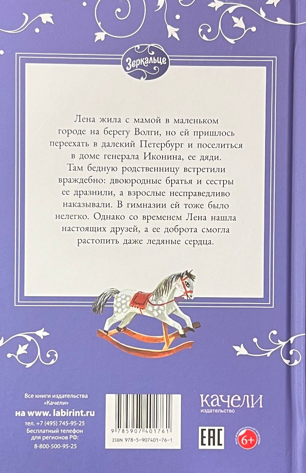 Lena lived with her mother in a small town on the banks of the Volga, but she had to move to distant St. Petersburg and settled in the house of General Ikonin, her uncle. There the poor relative was met with hostility: cousins and sisters teased her, and adults unfairly punished her. In gymnasium she also had a hard time. However, over time, Lena found real friends, and her kindness was able to melt even icy hearts. Illustrations to the book belong to a wonderful Moscow artist Anna Vlasova, whom readers have long known and loved. For primary school age.