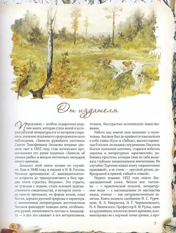 "Notes of a Rifleman" is an encyclopedia of Russian hunting life: from descriptions of gunpowder, rifles, and dogs to observations of game habits and philosophical reflections on man and nature. Aksakov depicts Russian landscapes with exceptional precision and love, conveying the spirit of the times and the hunters' way of life, and subtly reveals the psychology of hunting passion.