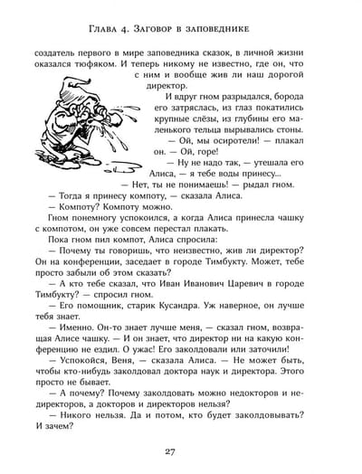 There is an emergency in the Moscow Fairy Tale Reserve - the director is missing! The residents of the reserve have turned to Alice for help. The brave girl will find out what became of the director, and will go to the legendary era to help him. About how Alice Selezneva and fairy tale heroes restored peace in the reserve, read in the novels "Fairy Tale Reserve" and "Ivan Ivanovich the Goat". In the story "The Lilac Ball," Alice once again travels to the age of legends to find and neutralize the virus of malice and hostility that could destroy humanity. For children ages 11-14.