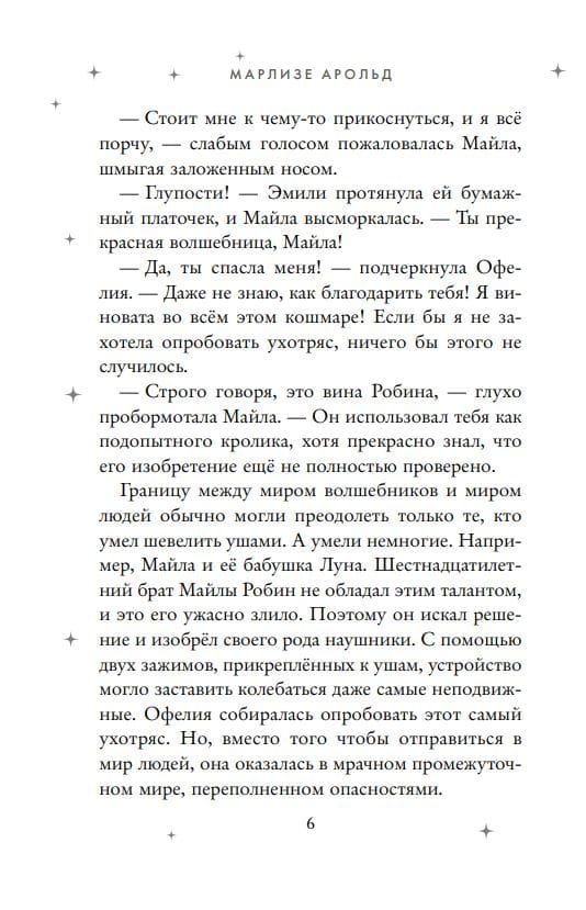 The "Mayla the Magician" series captivates you from the very first page. An original plot, humor, and a likeable heroine who never gets bored. The book literally sparkles with magic, but it also conveys an interesting idea: magic isn't the solution to every problem. You can build a palace with it, but it will collapse as soon as the spell wears off. Magic makes life easier, but it shouldn't be overused.