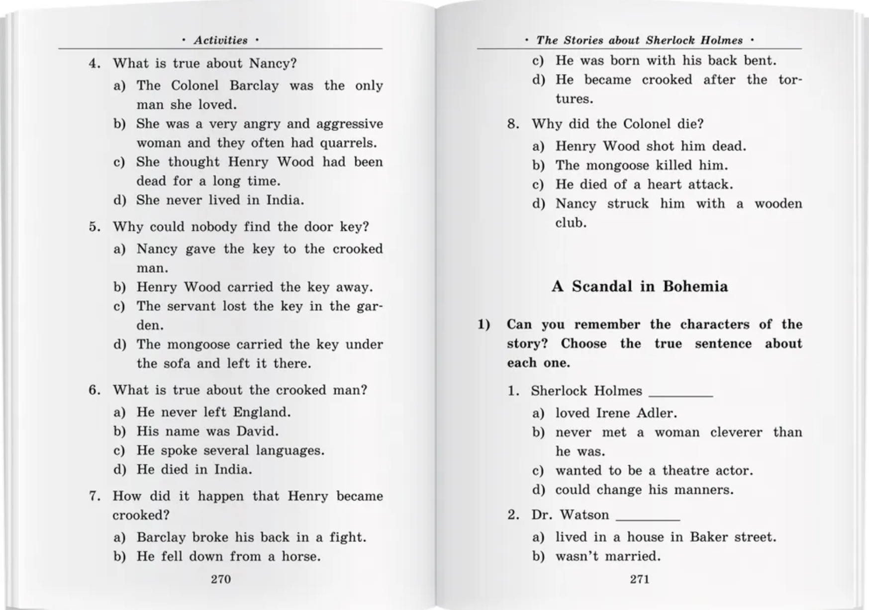 This book introduces readers to the works of the renowned English writer Arthur Conan Doyle. Within its pages, you'll meet familiar characters—Professor Challenger and his crew—learn where to encounter real dinosaurs, and follow the unraveling of mysterious crimes. The texts of the works—"The Lost World" and the Sherlock Holmes stories—are adapted for the language proficiency of students in grades 5 and 6. The book includes commentary and exercises.