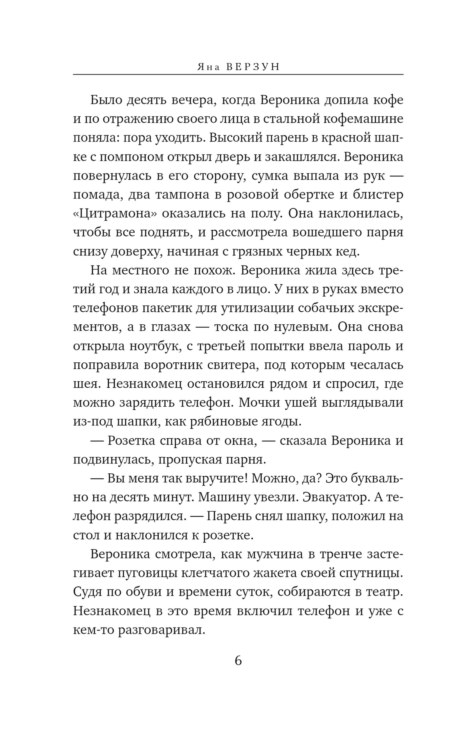 Veronica is the daughter of a famous surgeon and lives in the center of Moscow. More than anything, she is afraid of gaining a few kilos and not picking up the phone when her mother calls. She dreams of an ideal relationship.