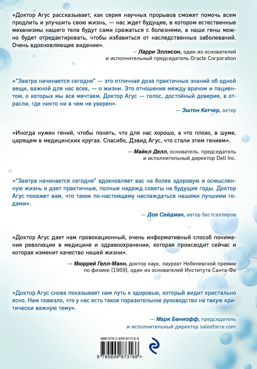 Dr. David Agus, the doctor who managed to prolong Steve Jobs' life as much as possible, the author of two bestsellers about healthy and long life, in his third book revealed the secrets of medicine of the present, spoke about its future and explained how to live to it and stay healthy.