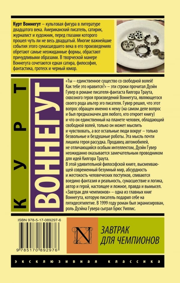 "You are the only creature with free will! How do you like it?" - these lines were read by Dwayne Hoover in the novel by science fiction writer Kilgore Trout, a recurring character in Vonnegut's works, who is a kind of alter ego of the writer. Hoover decided that this question was addressed specifically to him (in fact, the question was intended for anyone who opened the book) and that he was the only person on the planet with free will, only he could think and feel, and all the other people around were just weak-willed and soulless robots. This thought almost deprived the hero of his mind. A car salesman, not distinguished by any particular intellect, Dwayne Hoover unexpectedly turns out to be a wonderful conduit for the ideas of Kilgore Trout. In this amazing philosophical book, ridiculing the modern crazy world, the absurdity and cruelty of human misdeeds, fantasy and reality, madness and logic, author and hero, real and false, truth and fiction merge. Breakfast of Champions is one of Vonnegut's most important books, which the writer gave himself for his fiftieth birthday. In 1999, the novel was filmed, with Bruce Willis playing the role of Dwayne Hoover.