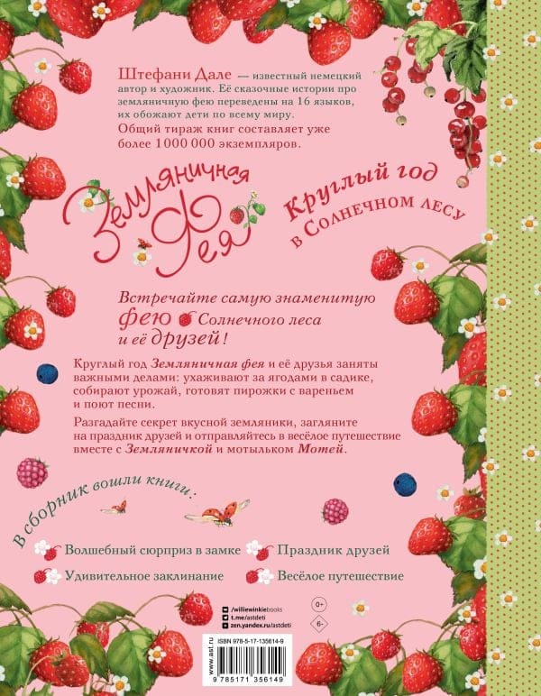The series has been translated into 16 languages, and the total circulation of the books already exceeds 1,000,000 copies. "Strawberry Fairy. All Year Round in the Sunny Forest" is a collection that includes the books "A Magical Surprise in the Castle", "A Feast of Friends", "An Amazing Spell", "A Merry Journey".