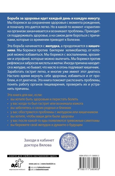 This book is written for ordinary people, either suffering from gastrointestinal diseases, wanting to avoid them in the future, or seeking to help loved ones. The first part of the book focuses on the upper digestive system, because the beginning is the most important. We will deal with problems of the esophagus, stomach, pancreas, liver, gallbladder, improper work of which causes pain, heaviness or heartburn. The second part of the book focuses on the intestines, which alone make up more than half of the entire digestive system. We will dispel myths about the intestine, learn to understand its symptoms and signals, understand how to monitor the intestine, how to reduce its irritation and extinguish the bacterial revolt occurring in it.