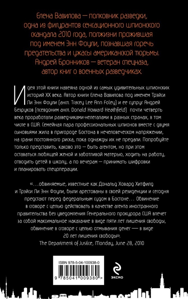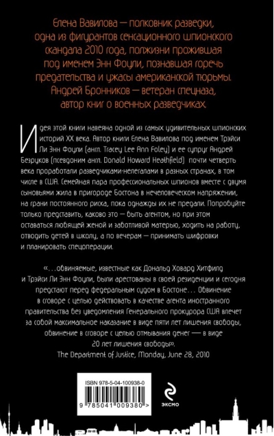 This book is inspired by one of the most astonishing spy stories of the 20th century. The author, Elena Vavilova, under the name Tracy Lee Ann Foley, and her husband, Andrei Bezrukov, worked as illegal intelligence agents for nearly a quarter of a century in various countries, including the United States. This professional spy couple, along with their two sons, lived in a Boston suburb under intense pressure, constantly at risk, until one day they were betrayed. Just imagine what it's like to be an agent while also being a loving wife and caring mother, going to work, taking the children to school, and in the evenings, receiving encrypted messages and planning special operations.