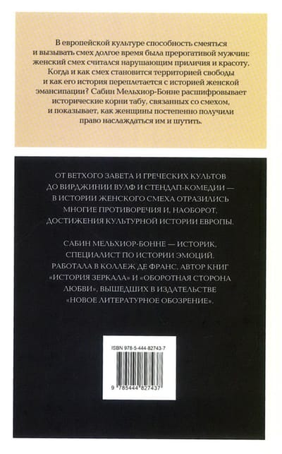 Sabine Melchior-Bonnet deciphers the historical roots of the taboos associated with laughter and shows how women gradually gained the right to enjoy it and joke about it. From the Old Testament and Greek cults to Virginia Woolf and stand-up comedy, the history of women's laughter reflects many contradictions and, conversely, achievements in European cultural history.