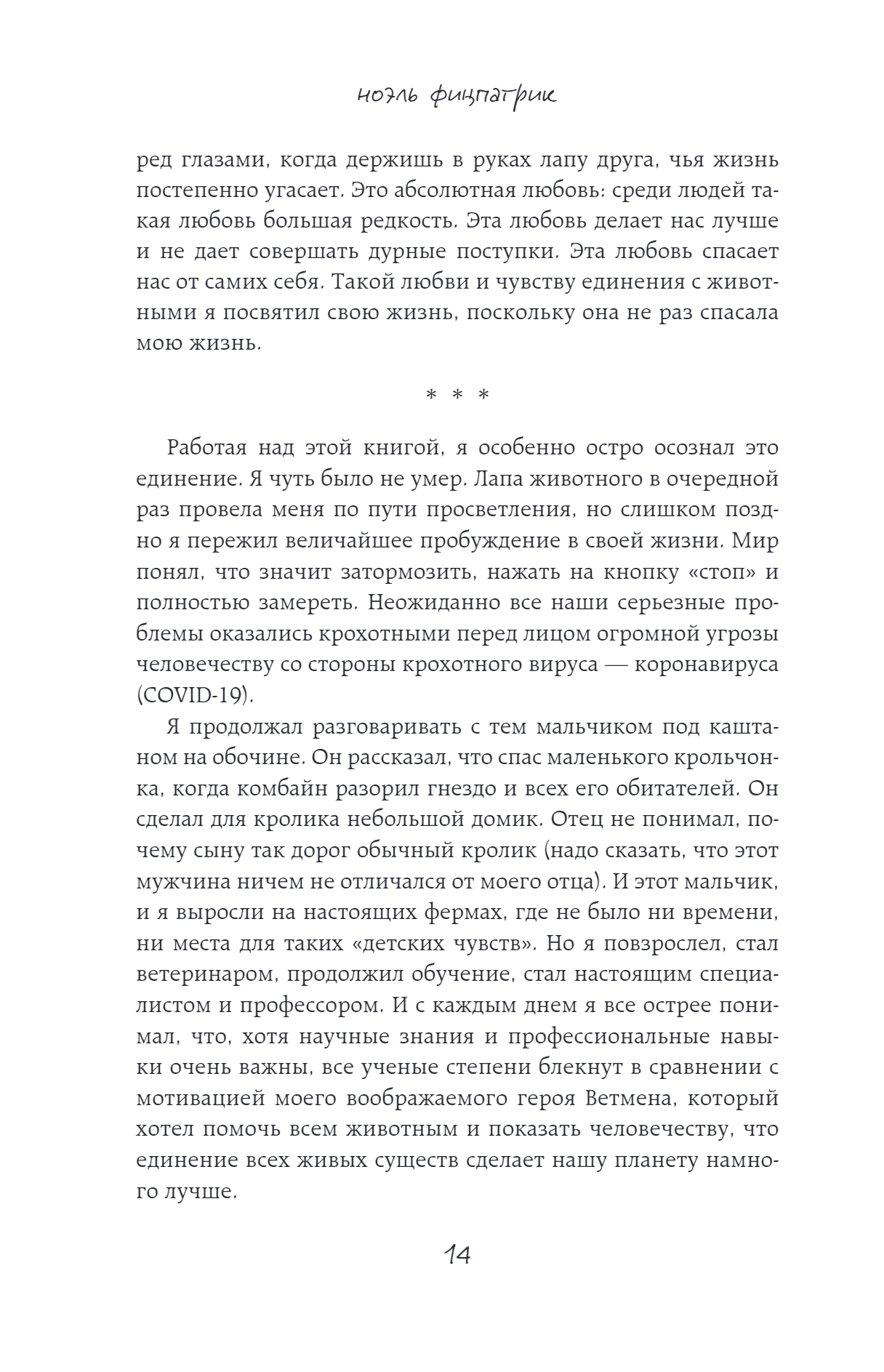 What makes us so attached to our pets? What drives us when we are ready to do anything to save the life of a four-legged friend? Veterinarians understand this best. In the book by the bestselling author of Listening to Animals, Professor Noel Fitzpatrick, you will meet Peanut, the world's first cat with two bionic limbs; an eight-year-old dachshund, Olive, who works as a therapy dog; a magnificent Doberman, who will turn out to be one of the author's most difficult patients, and, of course, his beloved companions - Maine Coon Ricochet and scruffy Border Terrier Kira, who were always by their owner's side. It has been 30 years since Noel Fitzpatrick received his diploma as a veterinary surgeon, now he is one of the world's leading experts in his field. On the way to this pinnacle, Noel has treated thousands of animals, many of which were considered hopeless, animals that have changed his life and the lives of others for the better. If the previous Sunday Times #1 bestseller Listening to Animals was about the author’s journey to becoming a super vet, this book is about what it’s really like to fight every day for the lives of vulnerable creatures and still be a real human being.
