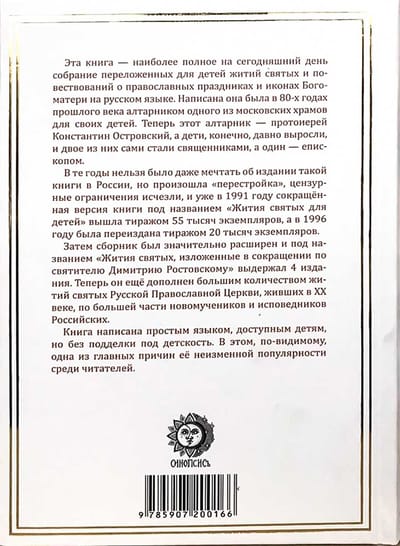 In those years, it was impossible to even dream of publishing such a book in Russia, but there was a “perestroika”, censorship restrictions disappeared, and in 1991 an abridged version of the book called “Life of Saints for Children” was published with a circulation of 55 thousand copies, and in 1996 it was reprinted with a circulation of 20 thousand copies.