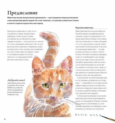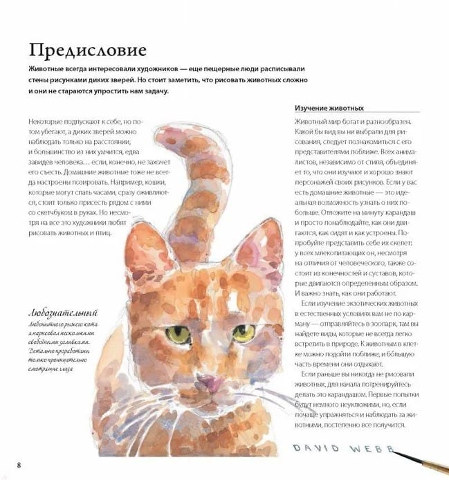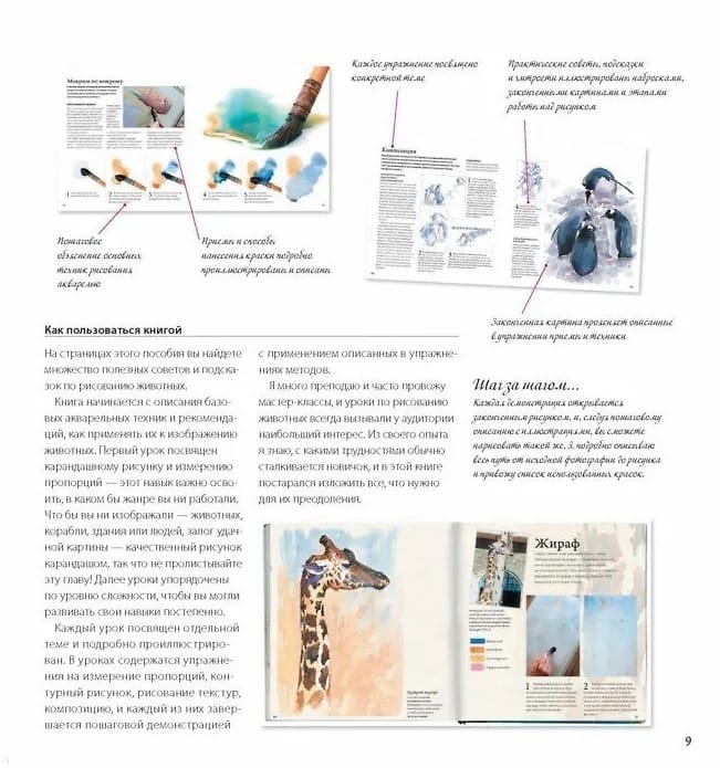 This book will be an excellent guide for those just planning their first box of watercolor paints and a source of valuable tips for anyone who has long been passionate about drawing and animal painting.