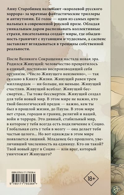 After the Great Contraction, a new era dawned. The Living One was born: humanity became a single, constantly reproducing organism. "The number of the Living Ones is immutable," so it is written in the Book of Life. The Living Ones are three billion—no more, no less. The Living Ones are happy. The Living Ones are all-good. The Living Ones are immortal... You, too, are immortal. The Living Ones have created a new world for you. In this world, your biological ancestor matters not—what matters is who you were in your past life, before the Pause. In this world, there are no countries, cities, or borders, no religions or nations, no wars or terror. It is a wondrous, stable world in which you are always connected to the Socio. The global network is in your brain—it makes you part of the whole...