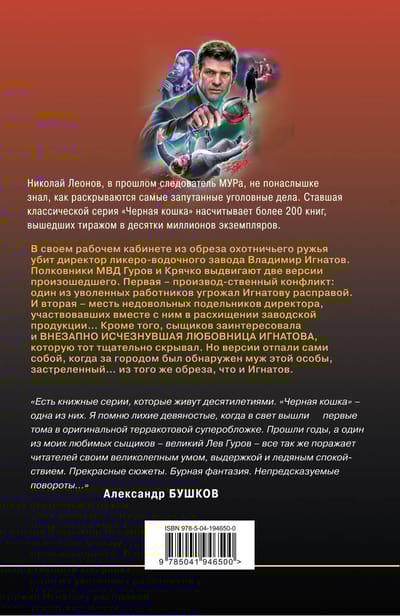 In his office from the cut of a hunting rifle killed the director of the distillery Vladimir Ignatov. Interior Ministry Colonels Gurov and Kryachko put forward two versions of what happened. The first: industrial conflict - one of the dismissed employees threatened Ignatov with death. And the second: revenge disgruntled associates of the director, who participated with him in the plundering of factory products ... In addition, the investigators interested and suddenly disappeared mistress Ignatov, which he carefully concealed. But the versions fell away by themselves, when outside the city was found the husband of this person, shot ... from the same cutlass that Ignatov. Nikolai Leonov, formerly an investigator of the MUR, knew firsthand how to solve the most intricate criminal cases. Therefore, each of his books - a true exciting story with unpredictable intrigue and an unexpected ending. The protagonist of these books, Colonel Lev Gurov - a detective of high class, moreover, with a lot of positive human qualities. He is respected by friends, feared by enemies and loved by women. He - a real domestic superman. Novels about Leo Gurov for forty years invariably attract fans of domestic detective. Became a classic series of "Black Cat" has more than 200 books, published in tens of millions of copies.