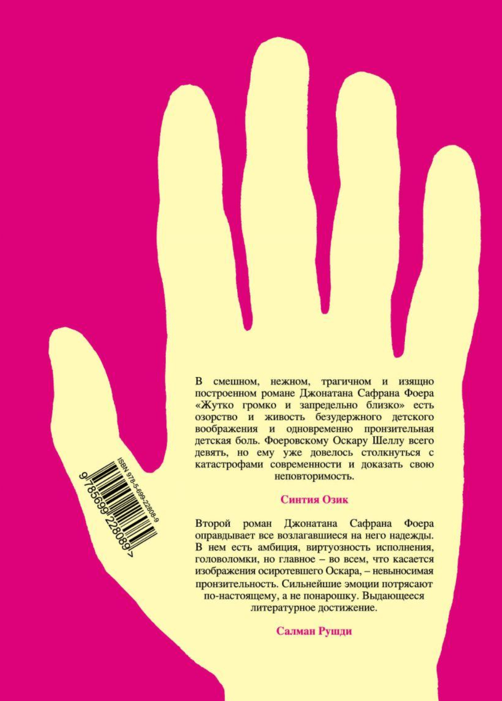 Foer's novel Extremely Loud and Incredibly Close is a moving, profound, sincere and heartbreaking story told by a 9-year-old boy whose father died in one of the Twin Towers on September 11, 2001. The world premiere of the film based on the book, starring Sandra Bullock and Tom Hanks, took place in January 2012.