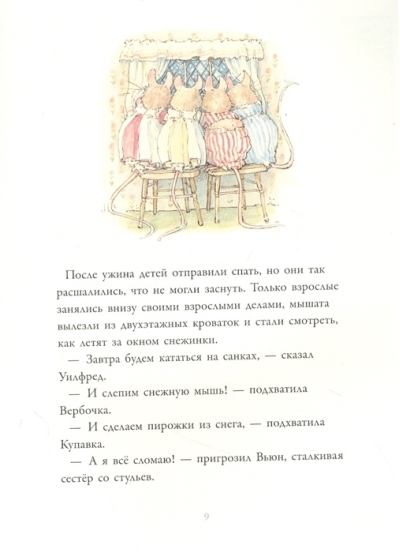 In the middle of winter, there was a hard frost in Bramble Glade. Every day the mice discussed among themselves that it was about to snow. And they were right. In the morning the little inhabitants found that the windows and doors of their houses were hidden under deep snowdrifts. It's time for a Snow Ball! The tales of the adventures of mice first appeared in 1980 and brought the author and illustrator Jill Barklem worldwide fame. More than 7,000,000 readers adore the inhabitants of Blackberry Glade. Attention to even the tiniest details, kind plots and cozy British atmosphere - in the world of Jill Barklem so want to stay at least one more cup of fragrant tea! The book comes in a brilliant translation by Olga Mäeotes.