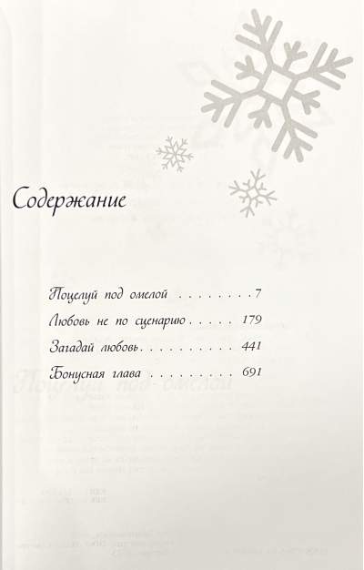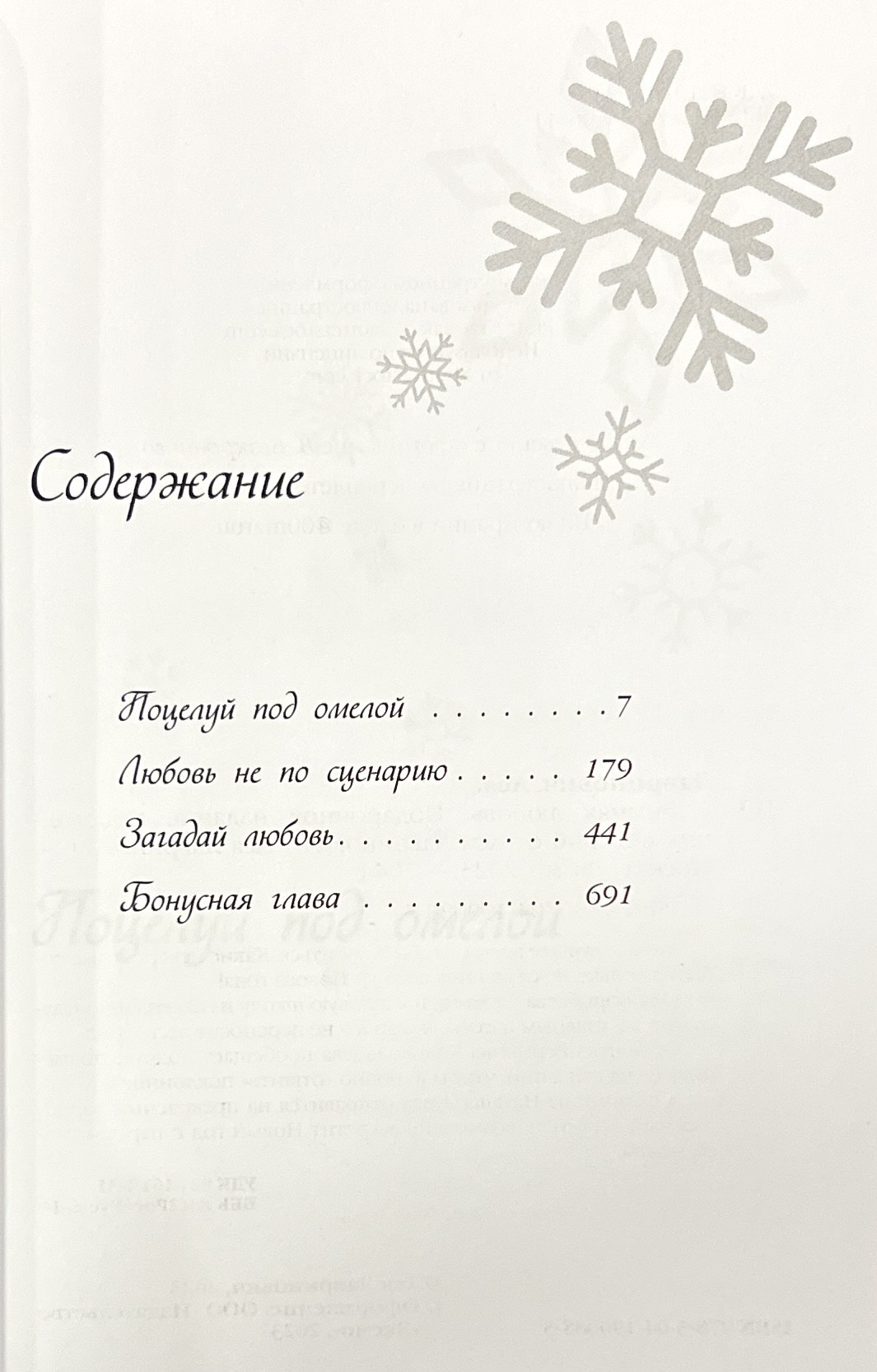 Incredibly beautiful illustration on the cover, painted trim, three color inserts with characters from the novels. The edition includes the works: "A Kiss Under the Mistletoe", "Love is not according to the script", "Make Love Predict". And also a bonus: an exclusive chapter written by Asya especially for this edition. Give yourself and your loved ones the gift of three captivating stories that are perfect for winter vacation. Feel the magic of the New Year holidays together with Asya!