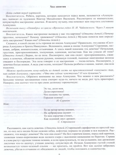 The album offers a methodology of pedagogical work, presents outlines of lessons and color reproductions of famous artists to familiarize children aged 6-7 with fairy-tale painting.