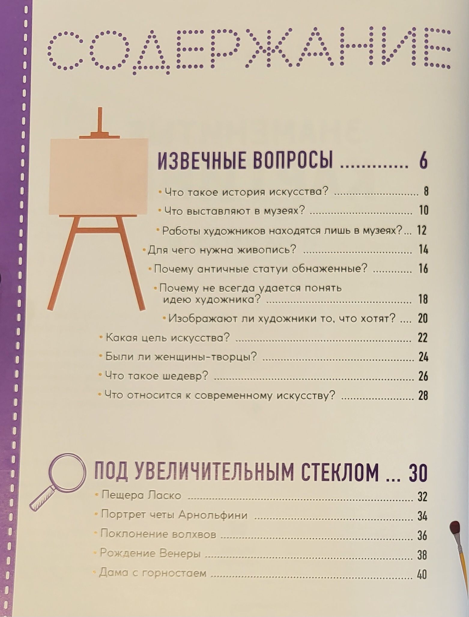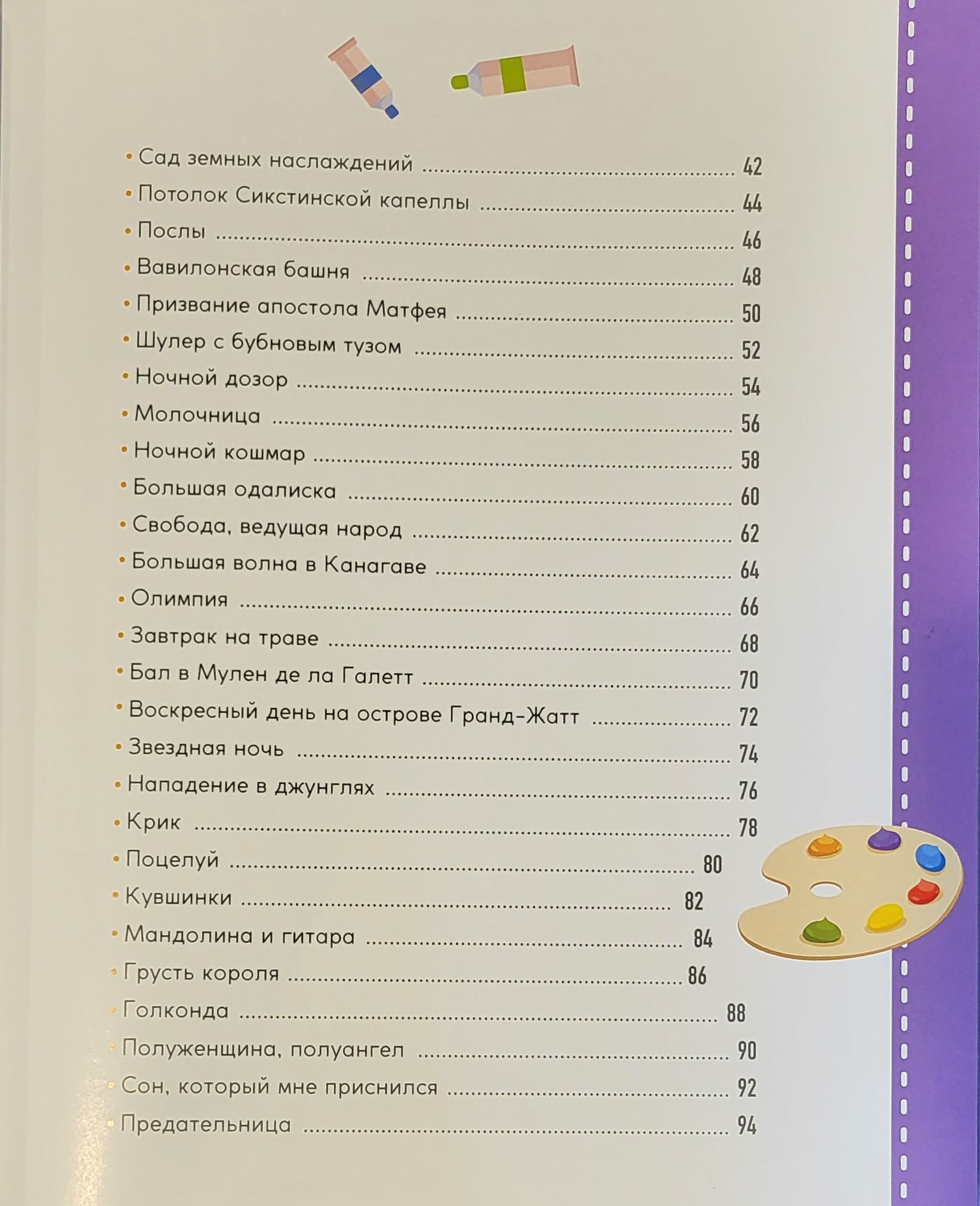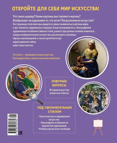 What is a masterpiece? What kind of paintings are exhibited in museums? Do artists portray what they want to portray? When did art come into being? On the pages of this book you will see the most famous paintings of the world, and art objects of modern creators. And also get acquainted with the biographies of artists and features of their style, learn about different painting techniques, genres of fine art, consider the key images of works, as well as read about the unsolved mysteries of famous paintings. This book is a guide to the world of art. Thanks to it you will become a connoisseur of painting.