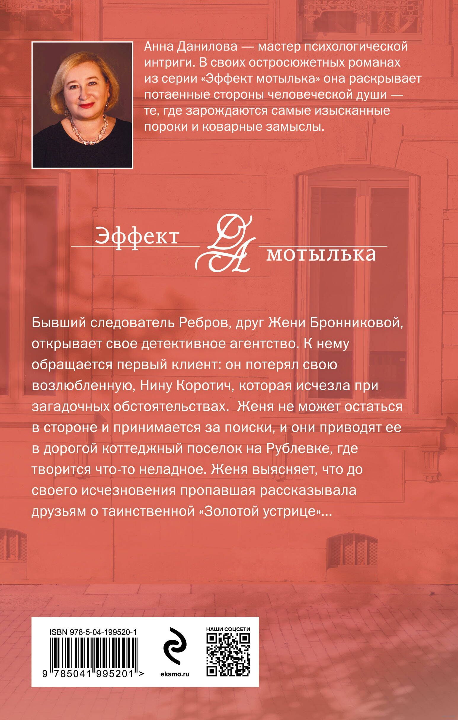 Former investigator Rebrov, a friend of Zhenya Bronnikova, opens his detective agency. He is approached by the first client: he lost his beloved, Nina Korotich, who disappeared under mysterious circumstances. Zhenya can not stay away and takes up the search, and they bring her to an expensive cottage village on Rublyovka, where something wrong is going on. Zhenya discovers that before her disappearance, the missing woman told her friends about the mysterious "Golden Oyster" ...