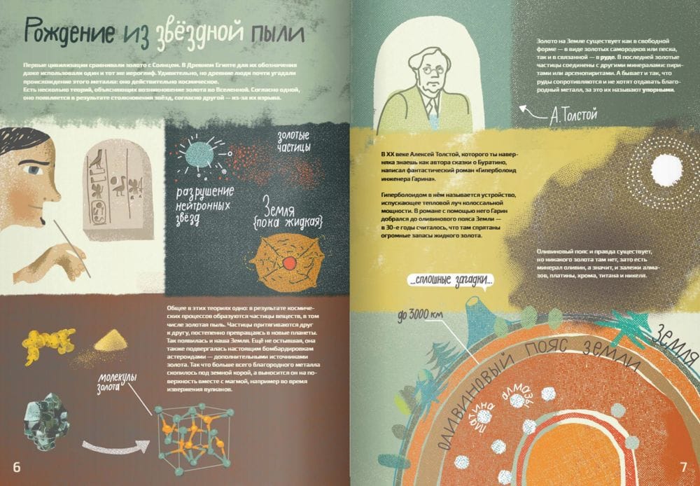 What is Gold? What are its properties? Why is it so valuable? How can this substance be mined? In this book, a whole world awaits you, where people of different professions every day turn an unsightly gray stone into a shiny gold bar. You will learn how dangerous gold fever is, how to find gold if you can't see it, why bubbles and electricity are needed in gold mining, what is tsar's vodka, why some ores are so stubborn and much more. Dredges and giant dump trucks, quarries, underground cities and high-tech labs await you. There are also a few games and experiments!
