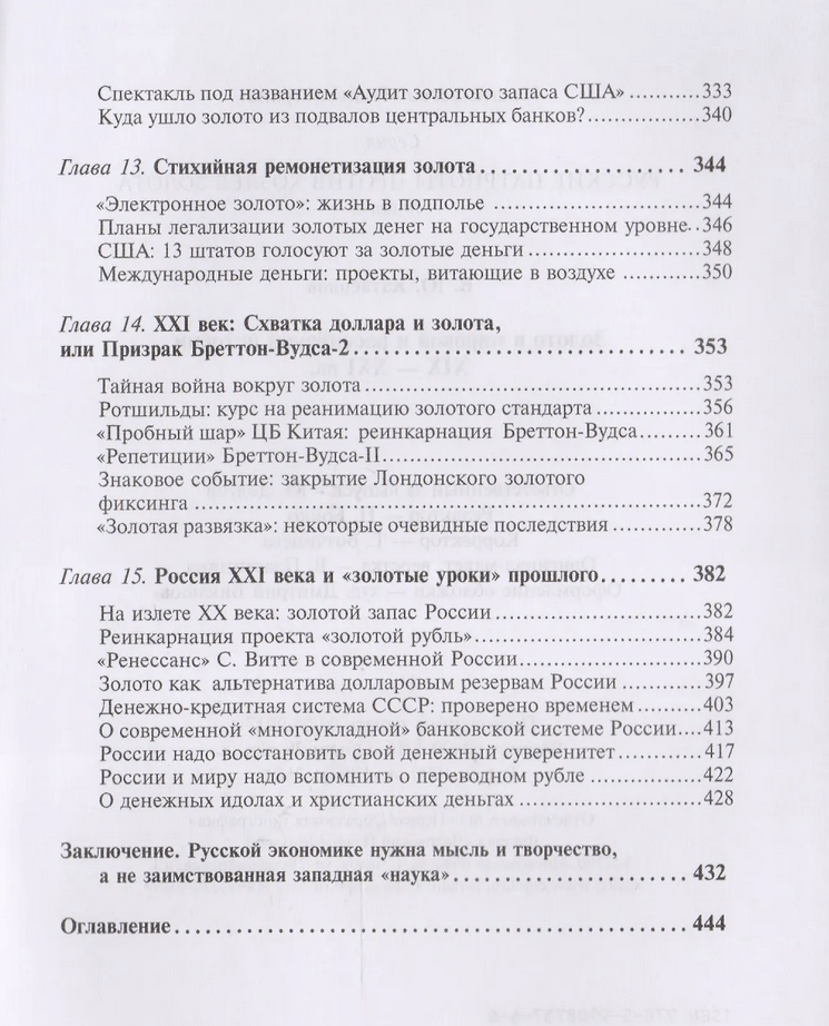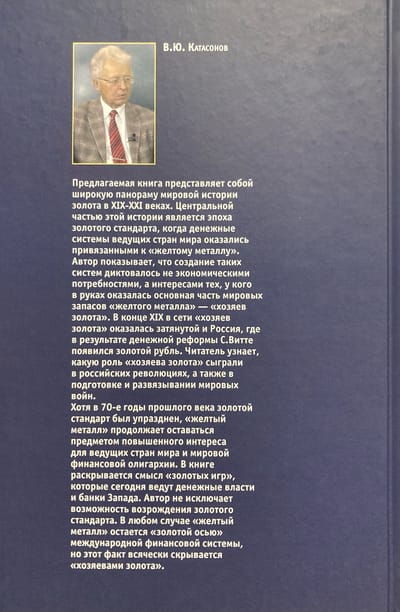 The book is a broad panorama of the world history of gold in the 19th - 21st centuries. The central part of this history is the era of the gold standard, when the monetary systems of the leading countries of the world were tied to the "yellow metal". The author shows that the creation of such systems was dictated not by economic needs, but by the interests of those who ended up in possession of the bulk of the world's reserves of the "yellow metal" - the "masters of gold". At the end of the 19th century, Russia was also caught in the network of the "masters of gold", where the gold ruble appeared as a result of S. Vitge's monetary reform. The reader will learn what role the "masters of gold" played in the Russian revolutions, as well as in the preparation and unleashing of world wars. Although the gold standard was abolished in the 70s of the last century, the "yellow metal" continues to be a subject of heightened interest for the leading countries of the world and the world financial oligarchy. The book reveals the meaning of the "gold games" that are being played today by the monetary authorities and banks of the West. The author does not exclude the possibility of the revival of the gold standard. In any case, the “yellow metal” remains the “golden axis” of the international financial system, but this fact is hidden in every possible way by the “owners of gold”.