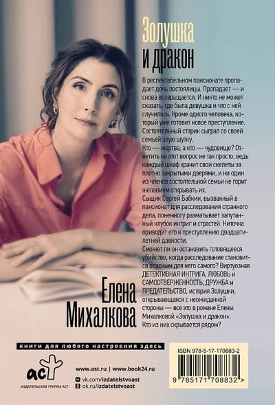 A resident's daughter disappears in a respectable boarding house. She disappears - and then returns again. And no one can say where the girl was and what happened to her. Except for one person who is already preparing a new crime. A wealthy old man played a cruel joke on his family. Who is the victim and who is the monster? It is not so easy to answer this question, because every closet keeps its skeletons behind tightly closed doors, and not a single member of the wealthy family is eager to open them. Detective Sergei Babkin, called to the boarding house to investigate a strange case, gradually unravels a tangled ball of intrigue and passion. The thread leads him to a crime committed twenty years ago. Will he be able to stop the impending murder when the investigation becomes dangerous for himself? A virtuoso detective intrigue, love and selflessness, friendship and betrayal, the story of Cinderella, revealed from an unexpected side - all this in the new novel by Elena Mikhalkova "Cinderella and the Dragon". Who of them is hiding nearby?