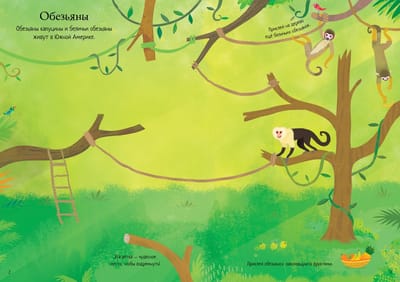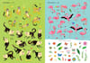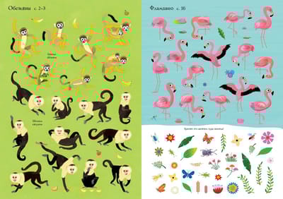 Look at a variety of birds and animals: lions, monkeys, seals, parrots and flamingos. Find a place for each animal on the page.