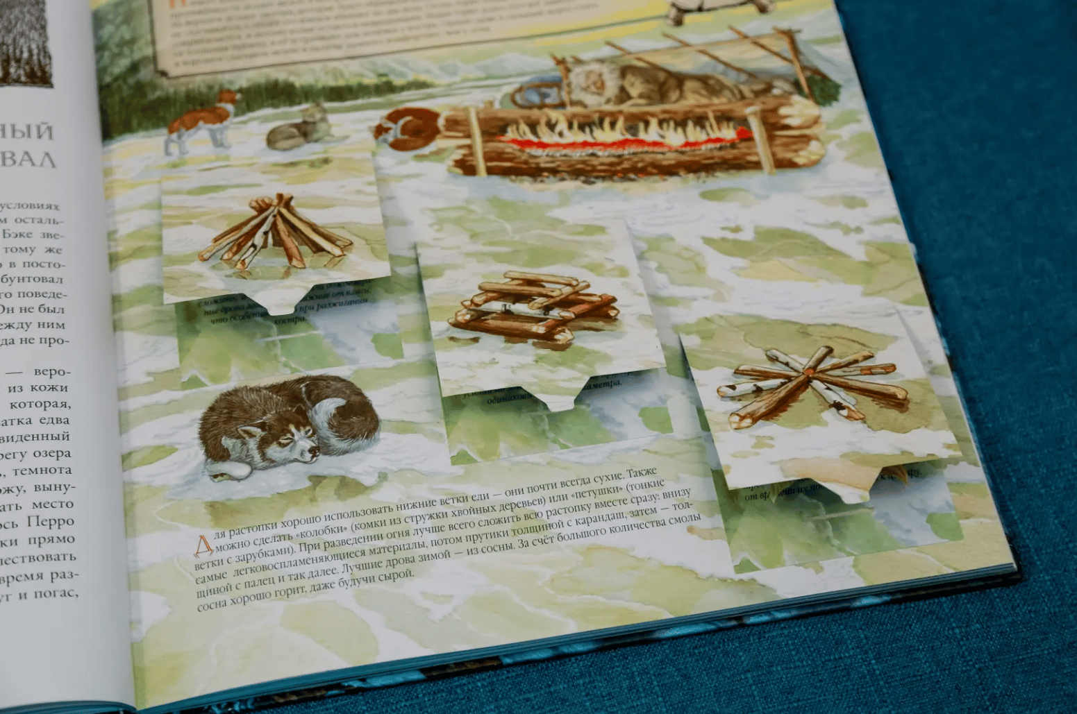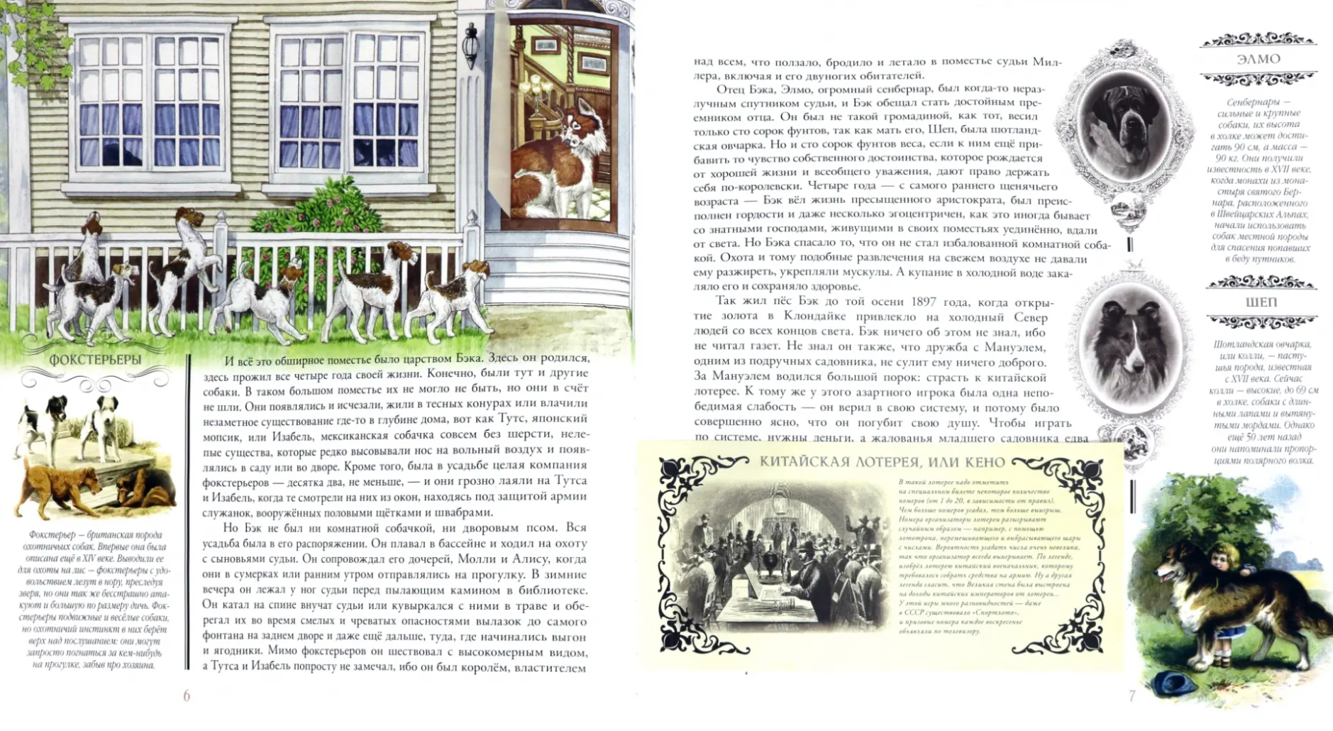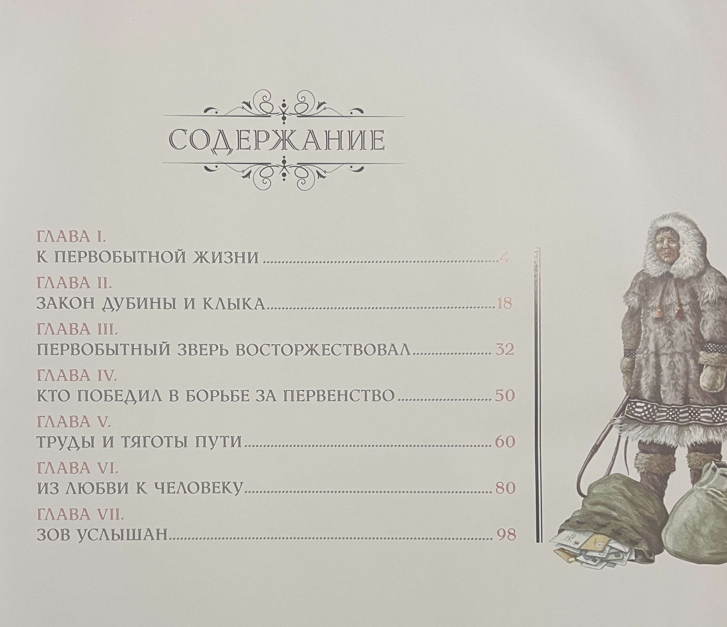 Contemporary illustrations faithfully depict all the plot twists, while drawings from zoological and ethnographic atlases, maps, and engravings allow you to see the world Buck finds himself in as it was seen by his contemporaries and Jack London himself.