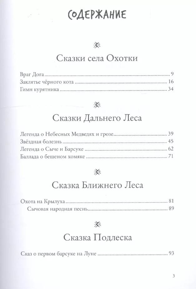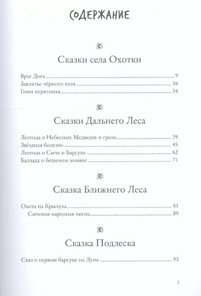 Many schoolchildren are already familiar with Badger the Elder and Badgerkot from "The Brutal Detective", and this is a kind of prehistory of the detective: Badgerkot is a little boy here, and Badger the Elder tells him bedtime stories. The book is divided into several parts based on geography: here are tales from the village of Okhotka, the Far and Near Forest, the Undergrowth and Wild Woodland, the Far Redwoods, the Underwater Forest, and the Rare Sopoki. All of them are as fascinating as the Detective, so now not only schoolchildren but also preschoolers are in luck.