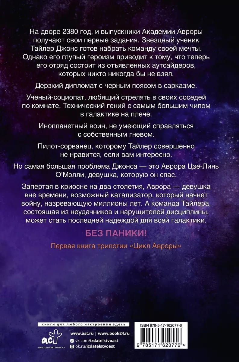 It's the year 2380, and the graduates of Aurora Academy are getting their first assignments. Star student Tyler Jones is ready to recruit his dream team. However, his foolish heroism leads to the fact that his squad is now made up of badass outsiders that no one would ever take. A cocky diplomat with a black belt in sarcasm. A sociopathic scientist who likes to shoot his roommates. A tech genius with the biggest chip in the galaxy on his shoulder. An alien warrior who doesn't know how to deal with his own anger. A tomboy pilot who totally dislikes Tyler, in case you were wondering. But Jones' biggest problem is Aurora Tse-Linh O'Malley, the girl he saved. Locked in cryosleep for two centuries, Aurora is a girl out of time, a possible catalyst that will start a war that has been brewing for millions of years. And Tyler's team of misfits and troublemakers may be the last hope for the entire galaxy.