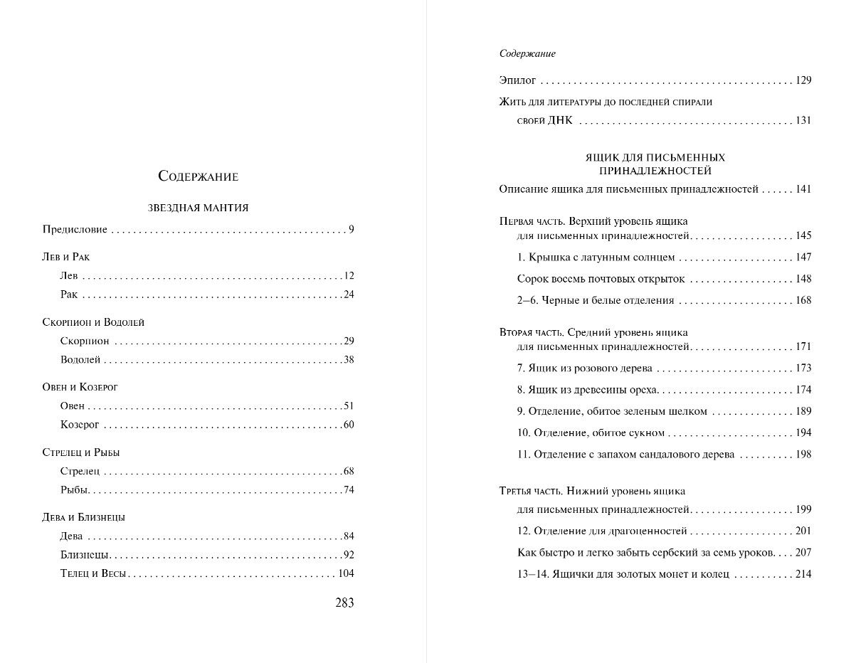 The story of "The Writing Box" begins at the very end. Inside the box—in postcards, an ad, a recipe, a manuscript, pages torn from a book, film, and photographs—is captured the complex love story of two extraordinary individuals. She can read scents and twice buys the most expensive fur coat in Paris completely free. He searches for a girl with a female copy of the "Khazar Dictionary" and forgets his native Serbian in seven lessons. Their relationship is measured by the love clock, which measures the duration of lovemaking...