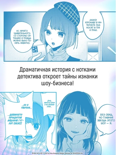 Hoping to learn the truth about her father, Aqua agrees to appear on a reality show. Most of the contestants are young stars who came on the show hoping to become famous. However, fame has its downside. After all, when it comes to high viewership ratings, reality, in the editing room, becomes whatever the director desires. Young actress Akane Kurokawa experienced this better than anyone. Under pressure from her agency, she bent over backwards for the attention of her fans. But Akane never expected that she would ultimately have to sacrifice her reputation and become a social outcast…