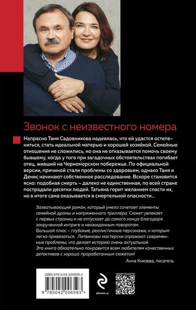 Twisted intrigue, understandable and close to the reader characters, modern problems - that's the secret of success of a good detective author Litvinov. The investigation is again led by well-known to readers on novels and TV series heroes - adventurer Tatiana Sadovnikova and her stepfather, retired colonel of foreign intelligence Valery Khodasevich.