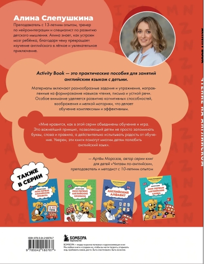 Aktivitātes grāmata ir saistošu un viegli saprotamu angļu valodas resursu sērija bērniem. Katrā grāmatā bērni mācās rotaļājoties: rakstot, zīmējot, krāsojot, iegaumējot jaunus vārdus un pakāpeniski sperot pārliecinošus soļus angļu valodas apgūšanas virzienā.
