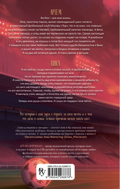 Neticama sporta romantika no Eilijas Frīmenas, romānu "Mīlestība roka ritmā" un "Izpleš spārnus" autores. Stikls, humors, drāma un futbola un rokmūzikas atmosfēra. Visiem Emīlijas Grīnas, Niki Sjū un Emīlijas Voganas faniem.