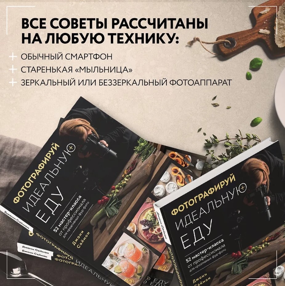 Uzņemt satriecošas ēdienu fotogrāfijas vēl nekad nav bijis tik vienkārši kā ar šo kompakto meistarklašu grāmatu, ko sagatavojis profesionāls ēdienu fotogrāfs. Ar 52 ātrām un vienkāršām nodarbībām Džonija Saimona sniegs jums zināšanas, kas nepieciešamas, lai radītu vispievilcīgākās ēdienu un dzērienu fotogrāfijas. Jūs apgūsiet ēdienu stila noslēpumus, kā izmantot dabisko apgaismojumu savā labā, un vienkāršus padomus, kā uzņemt perfektu jebkura jūsu gatavotā ēdiena kadru.