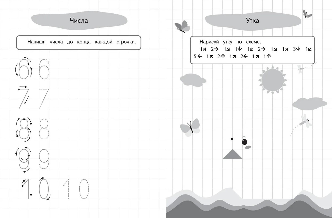 Прописи для будущих первоклашек. Рисуем по клеточкам