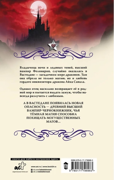Nakts un ledaino ēnu valdniece, Augstākā Vampīre Felinarija, nejauši nonāca Vastedanā, noslēpumainajā pūķu pasaulē. Tur viņa atrada ne tikai maģiju, bet arī lepnā pūķu inkvizitora Aika Savala mīlestību.