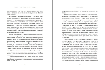 Šī ir viena no ikoniskākajām grāmatām par cilvēku attiecību psiholoģiju. Ēriks Berns izstrādāja sistēmu, kas spēj atbrīvot cilvēkus no dzīves scenāriju ietekmes, kas programmē viņu uzvedību, iemācot viņiem mazāk spēlēties attiecībās ar sevi un citiem, atrast patiesu brīvību un stimulēt personīgo izaugsmi. Šī grāmata piedāvā daudz noderīgu padomu, kas palīdzēs izprast cilvēku komunikācijas būtību, savas un citu rīcības motīvus un konfliktu cēloņus. Pēc autora domām, katra mūsu liktenis lielā mērā tiek noteikts agrā bērnībā, bet pieaugušā vecumā mēs varam iemācīties to kontrolēt, ja vien vēlamies. Tieši ar šī starptautiskā bestsellera publicēšanu mūsu valstī pēc Dzelzs priekškara krišanas sākās psiholoģiskais uzplaukums, kad miljoniem cilvēku saprata, ka psiholoģija var palīdzēt viņiem daudz ko izprast par sevi un citiem.