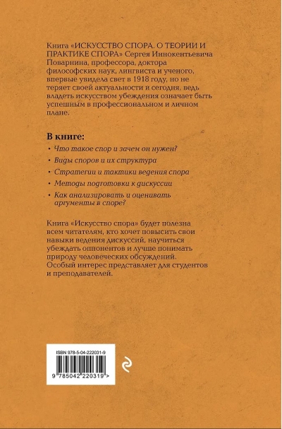 Filozofijas doktors un profesors S. Povarņins sniedz dziļu debašu būtības analīzi, piedāvājot stratēģijas un paņēmienus, kas palīdzēs ne tikai uzvarēt jebkurā diskusijā, bet arī izvairīties no bieži pieļautām kļūdām. Grāmatā detalizēti aprakstīti noteikumi un paņēmieni, kas palīdz apgūt loģiskās domāšanas pamatus un uzvarēt strīdos. Autors īpašu uzmanību pievērš sofismiem, nepatiesiem un patvaļīgiem argumentiem, neīstiem pierādījumiem un citiem trikiem, ko sarunu biedri izmanto savā argumentācijā. S. Povarņins ne tikai klasificē šos veidus, bet arī māca, kā tos identificēt, atspēkot un atrisināt strīdus savā labā.