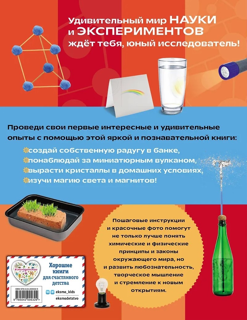 Šī enciklopēdija iepazīstina skolēnus ar aizraujošu eksperimentu pasauli! Tajā ir apkopoti aizraujošākie eksperimenti, kas saistīti ar gaisu, gaismu, skaņu, gravitāciju, magnētismu un elektrību, kā arī ķīmijas un dabaszinātņu eksperimenti. Detalizētas soli pa solim instrukcijas palīdzēs bērniem pareizi veikt katru eksperimentu, vienlaikus apgūstot daudz jaunas informācijas. Grāmata arī stimulēs radošo domāšanu un palīdzēs izprast apkārtējās pasaules likumus.