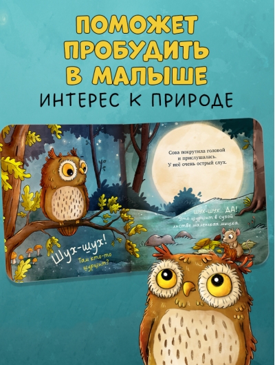 Saule pazuda aiz apvāršņa un iestājās nakts. Tas nozīmē, ka pūcei ir pienācis laiks mosties. Ko viņa darīs klusajā mežā? No šīs košās grāmatiņas mazulis uzzinās daudz jauna par meža iemītniekiem, iepazīsies ar viņu paradumiem un paradumiem.