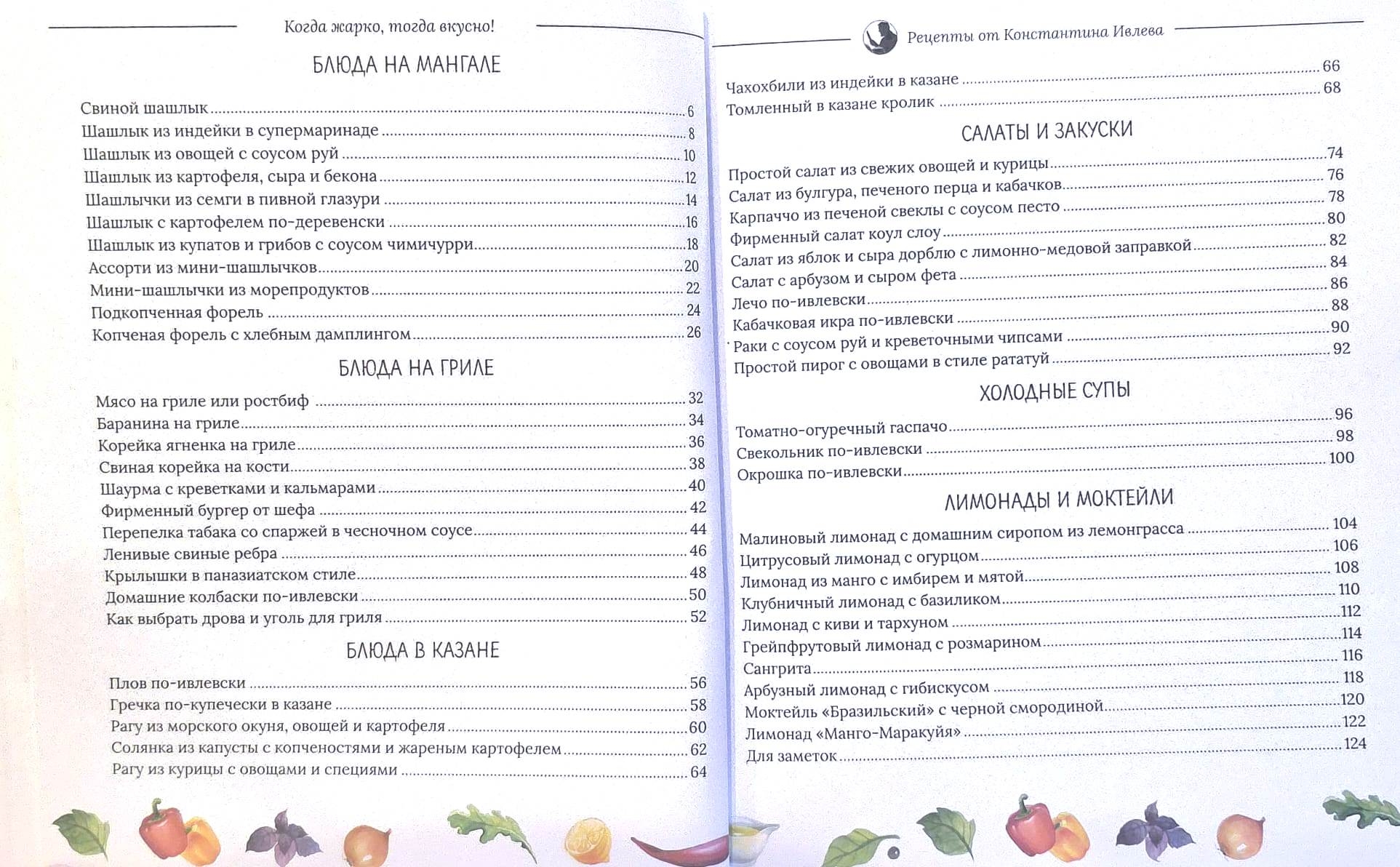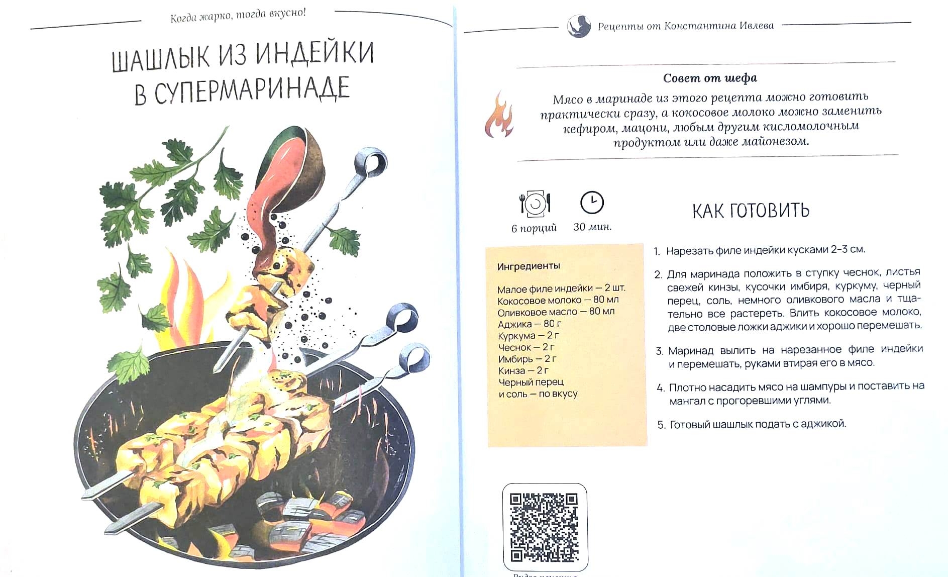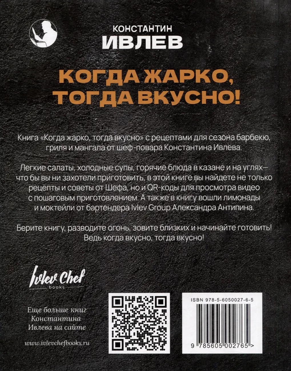 Šefpavāra Konstantīna Ivļeva firmas recepšu grāmata grilam, bārbekjū un citiem ēdieniem. Viegli salāti, aukstās zupas, karstie ēdieni vai gardi kokteiļi — lai ko jūs arī vēlētos pagatavot, šī jaunā grāmata sniegs jums nepieciešamās receptes, šefpavāra noslēpumus un video pamācības, kas pieejamas, izmantojot QR kodus.