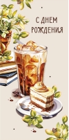 Naudas aploksne. Daudz laimes dzimšanas dienā. Ledus kafija ar desertu.