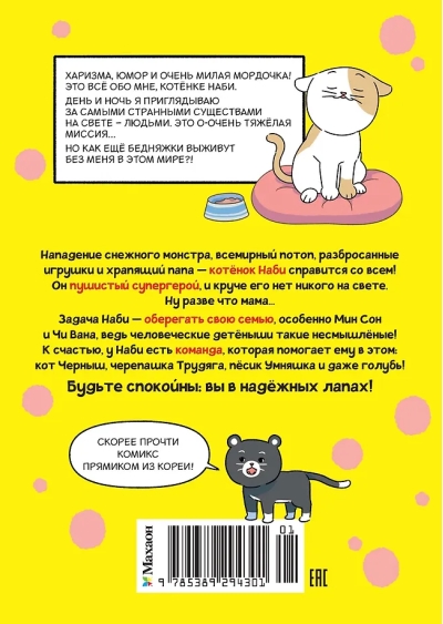 Sniega briesmoņa uzbrukums, globāli plūdi, izkaisītas rotaļlietas un krācošs tētis — kaķēns Nabi ar visu tiek galā! Viņš ir pūkains supervaronis, un nav neviena foršāka par viņu. Nu, izņemot varbūt viņa mammu...