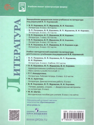 Mācību grāmata ir pārskatīta, lai tā atbilstu Federālā valsts izglītības standartam pamatizglītībā un parauga mācību priekšmetiem. Tā vispusīgi aptver literatūras mācību programmu vidusskolēniem. Ir pilnveidota mācību grāmatas uzdevumu sistēma. Ir ieviesti jauni darbi (tostarp M.Ju.Ļermontova dzejolis "Bura"). Īpaša uzmanība ir pievērsta studentu sagatavošanai eseju rakstīšanai. Ar mājasdarbu un projektu darbu palīdzību studenti varēs demonstrēt savas patstāvīgās pētniecības prasmes, iemācīties analizēt literārus tekstus un iegūt citas noderīgas prasmes un kompetences.